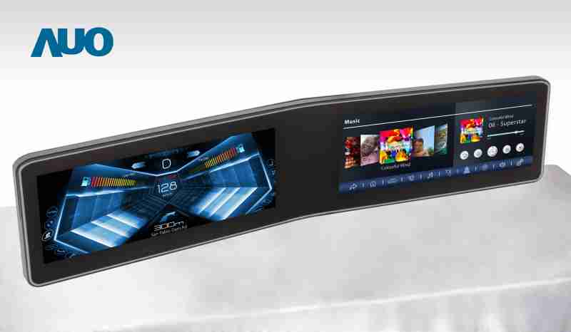 尊龙集团 V 型曲面驾驶舱显示器,,,,采全贴合拼接仪表板及中控台显示屏 |